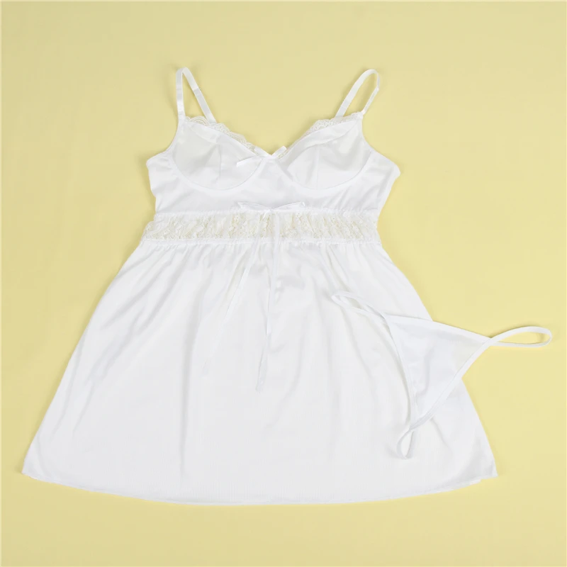 Strona Główna » Produkty » Bielizna Nocna » Koszule Nocne » Koszule nocne koronkowe » Biała koszulka nocna z koronkowym stanikiem i rozkloszowanym dołem
