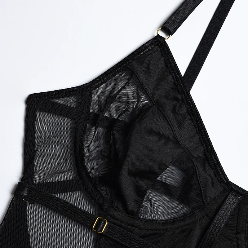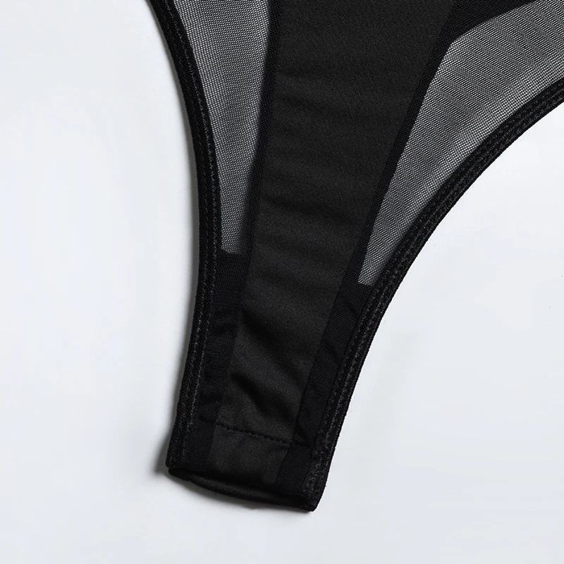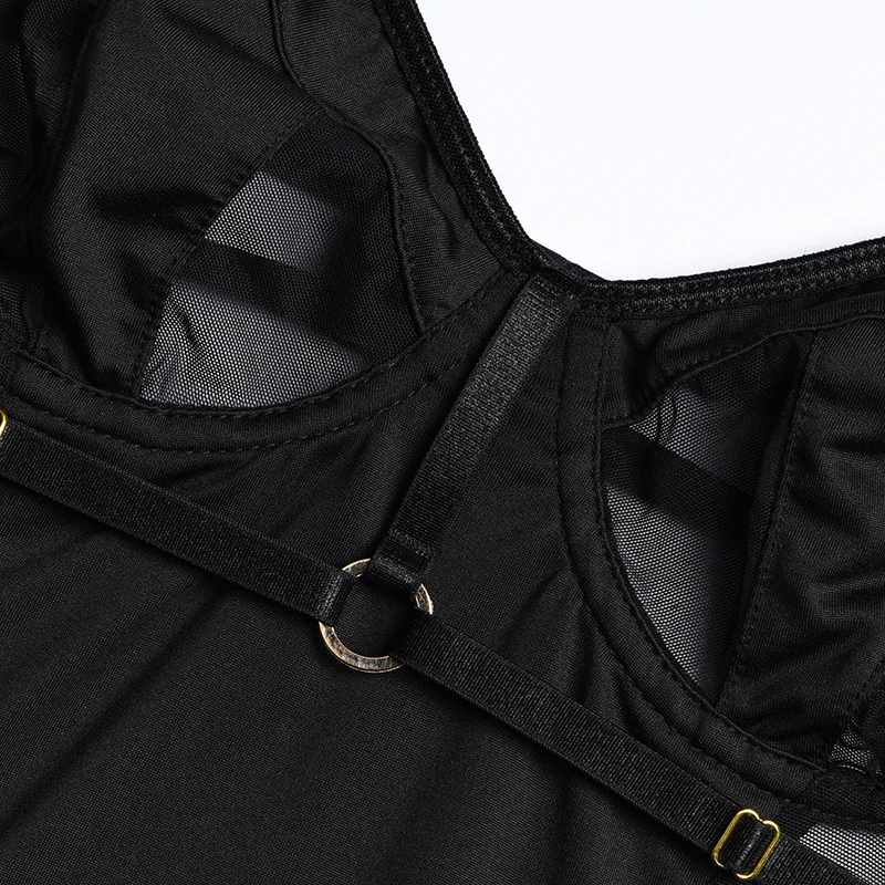 Strona Główna » Produkty » Bielizna Nocna » Body Damskie » Body na ramiączkach » Damskie czarne body z siateczką i paskami na uda