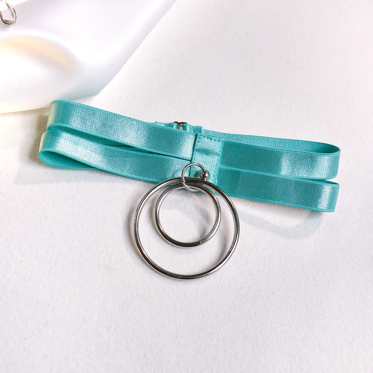 Body damskie z siateczki, paskami modelującymi i obrożą z kółkiem