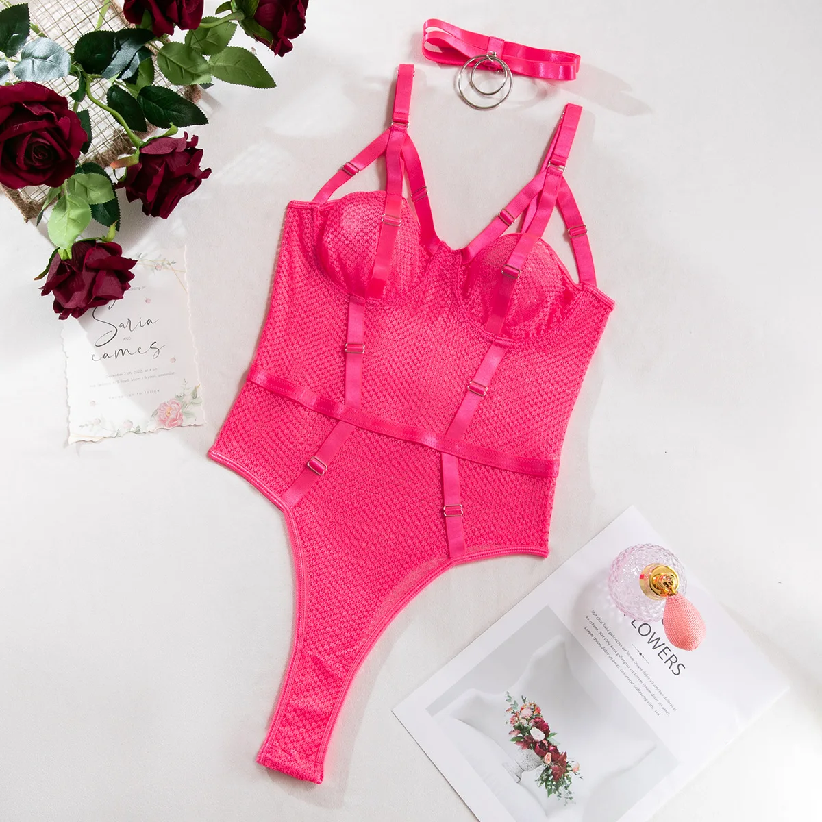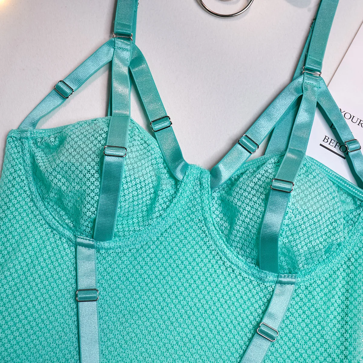 Strona Główna » Produkty » Bielizna Nocna » Body Damskie » Body na ramiączkach » Body damskie z siateczki, paskami modelującymi i obrożą z kółkiem