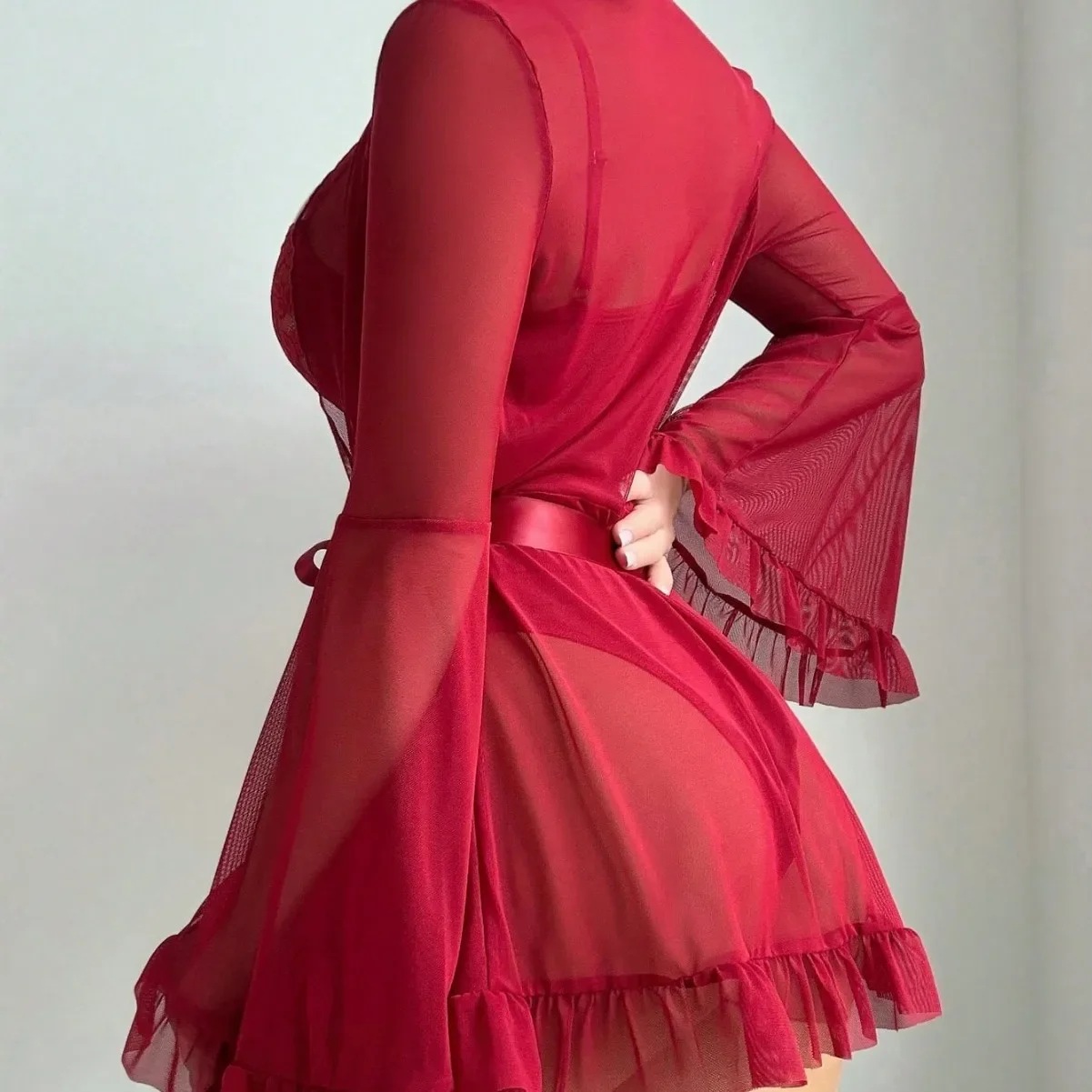 Strona Główna » Produkty » Bielizna Nocna » Body Damskie » Body koronkowe » Body koronkowe z wiązaną narzutką i rękawami typu dzwonek