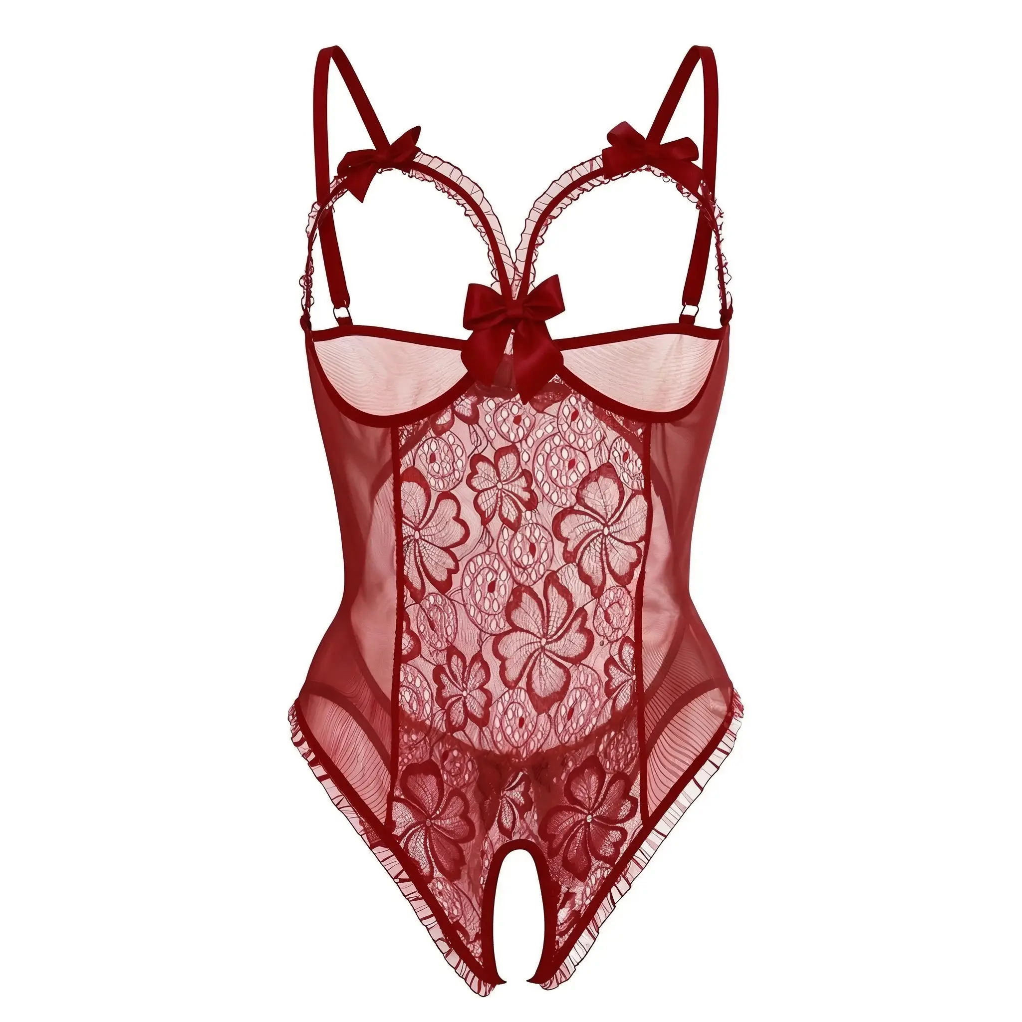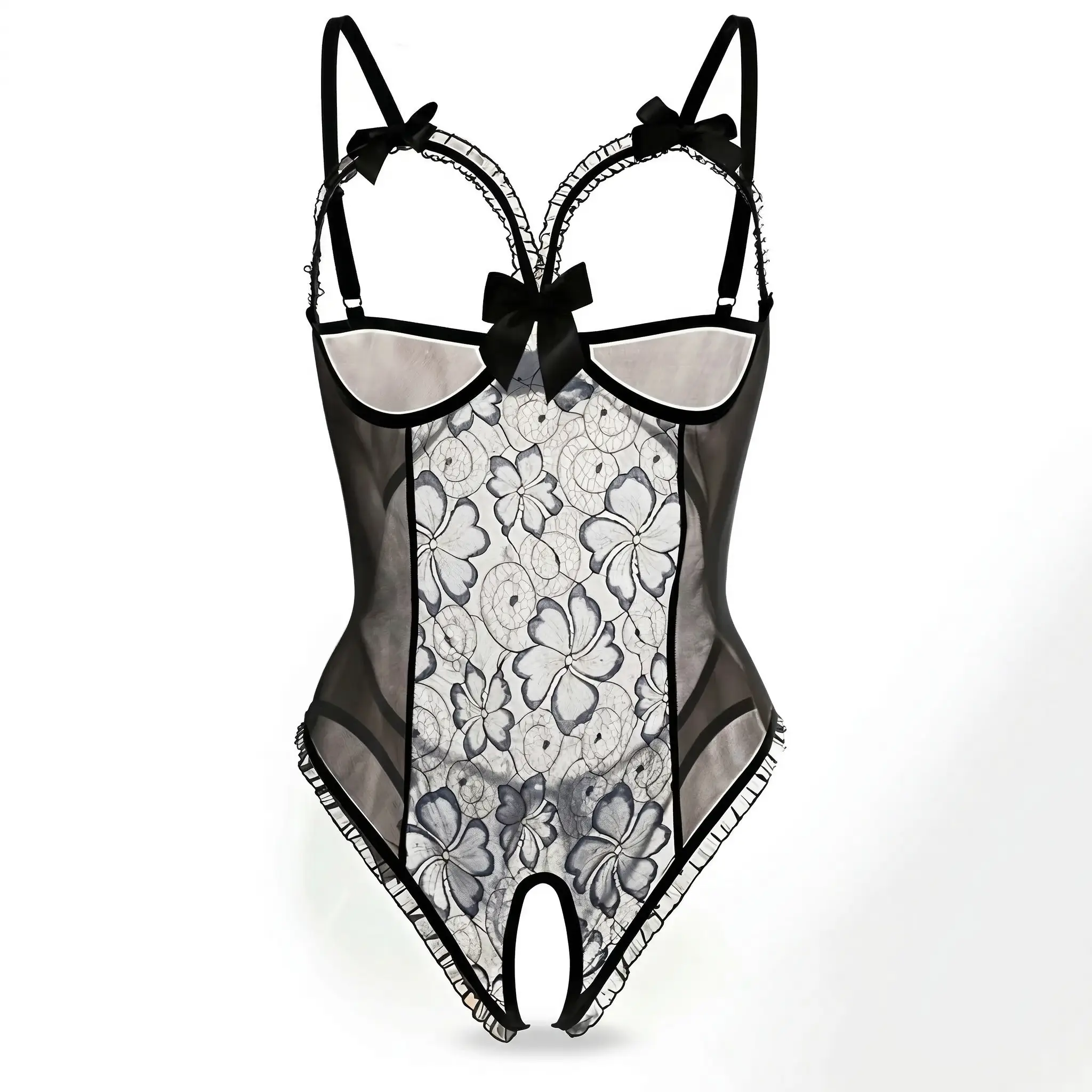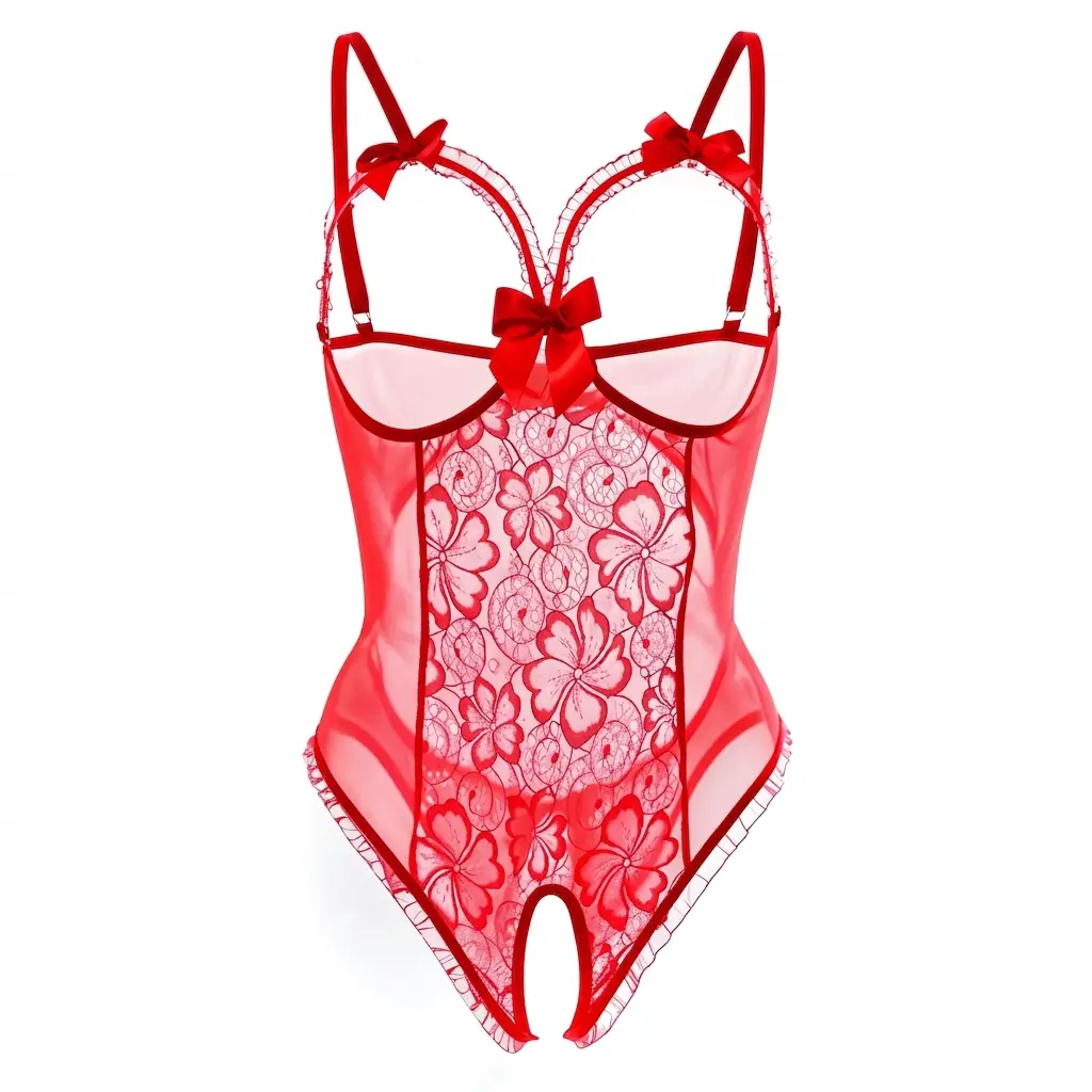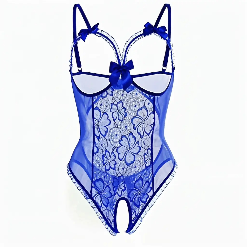Body damskie koronkowe z kokardkami i otwartym krokiem