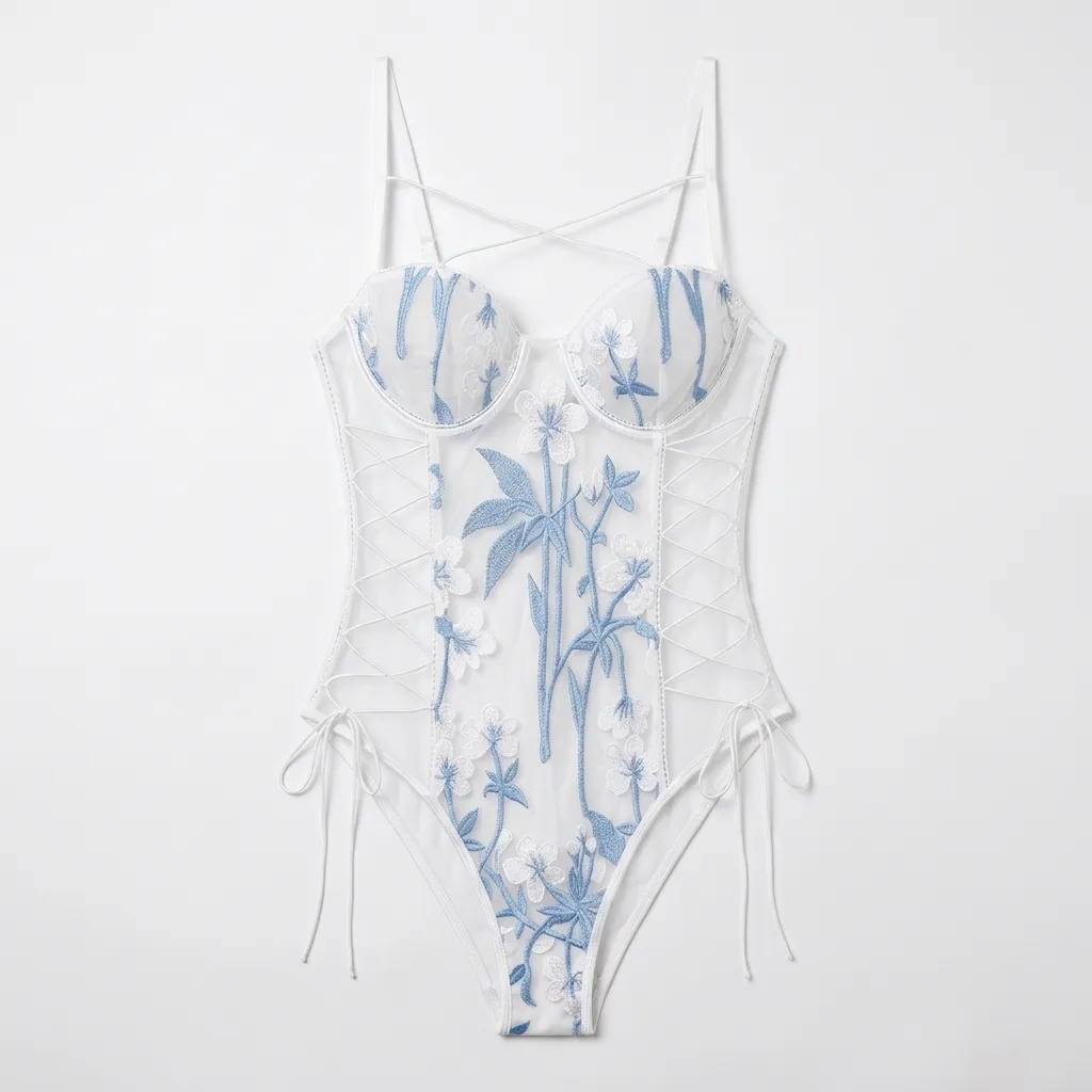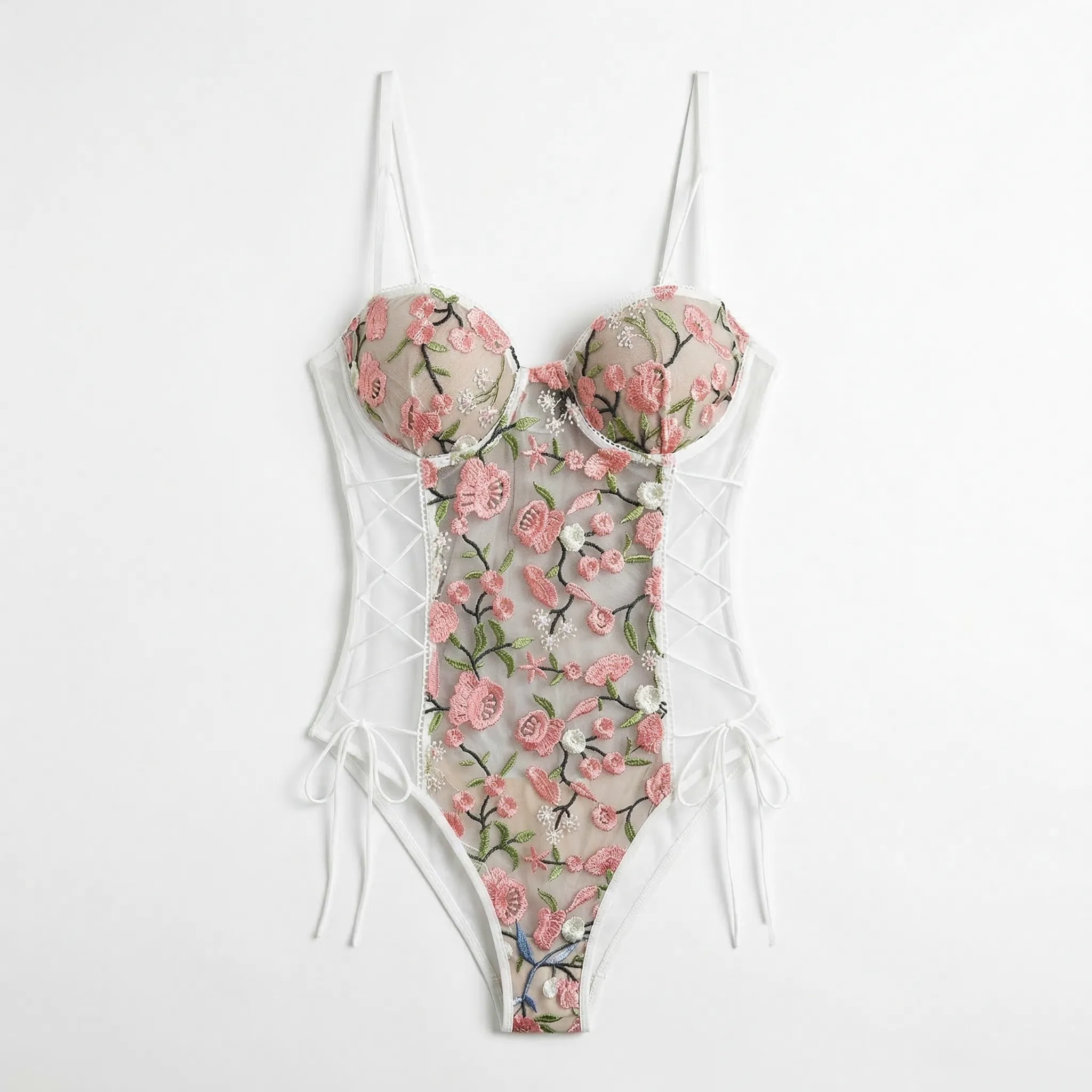 Body z haftem kwiatowym i bocznym sznurowaniem