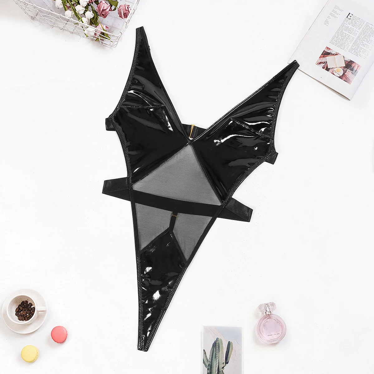 Strona Główna » Produkty » Bielizna Nocna » Body Damskie » Body na ramiączkach » Body z połyskującymi panelami i siateczkową wstawką