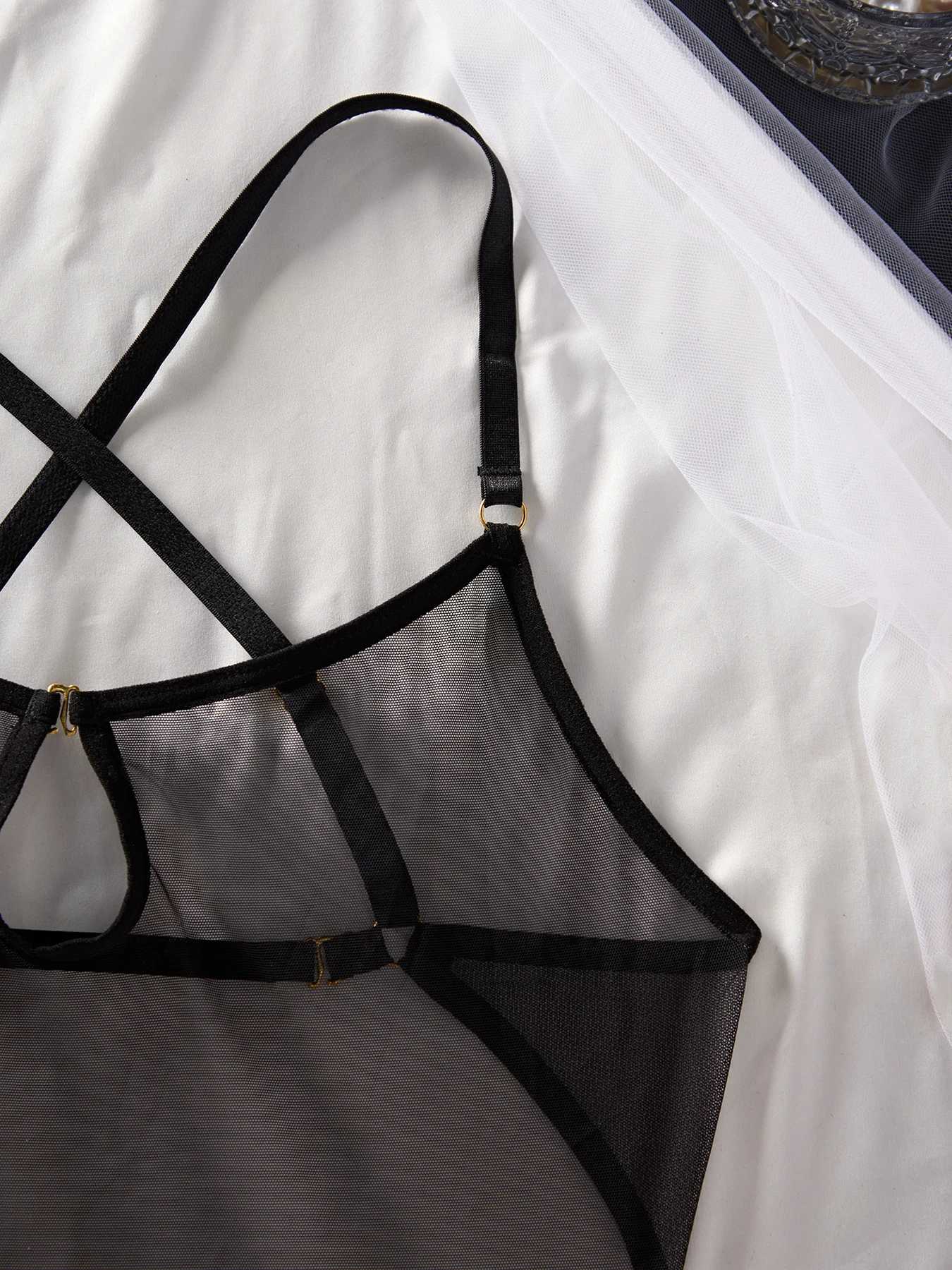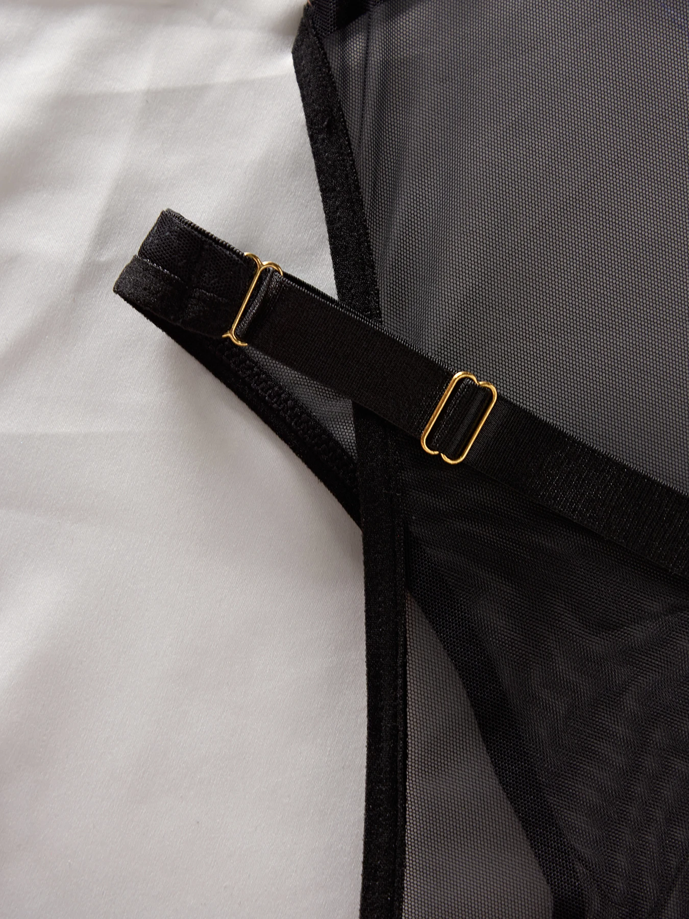 Body z siateczki z wycięciem i paskiem w talii
