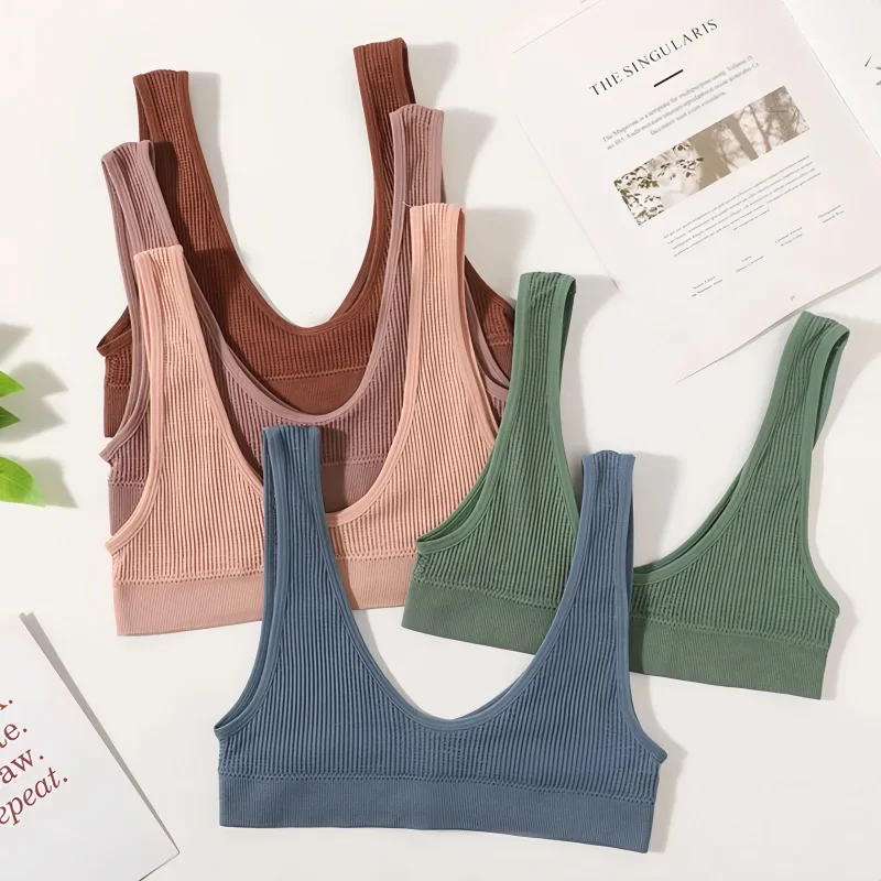 Strona Główna » Produkty » Bielizna Damska » Biustonosze » Bezszwowe » Bralette bezszwowy z prążkowanej dzianiny i głębokim dekoltem