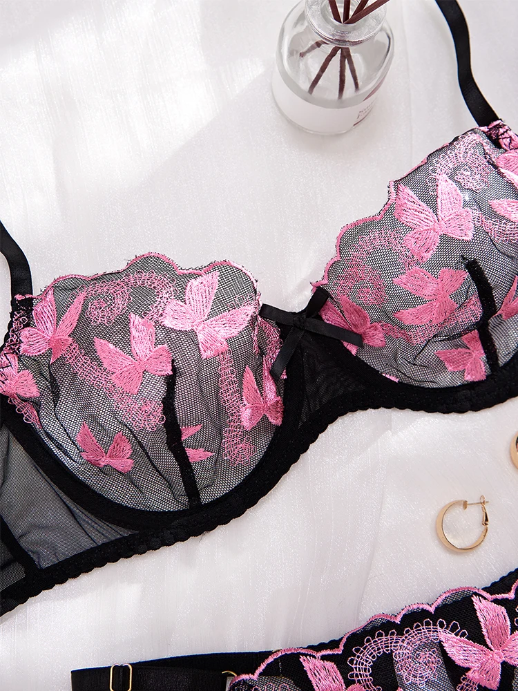 10 opinii dla Czarny zestaw bielizny z haftem motyli i fiszbinami