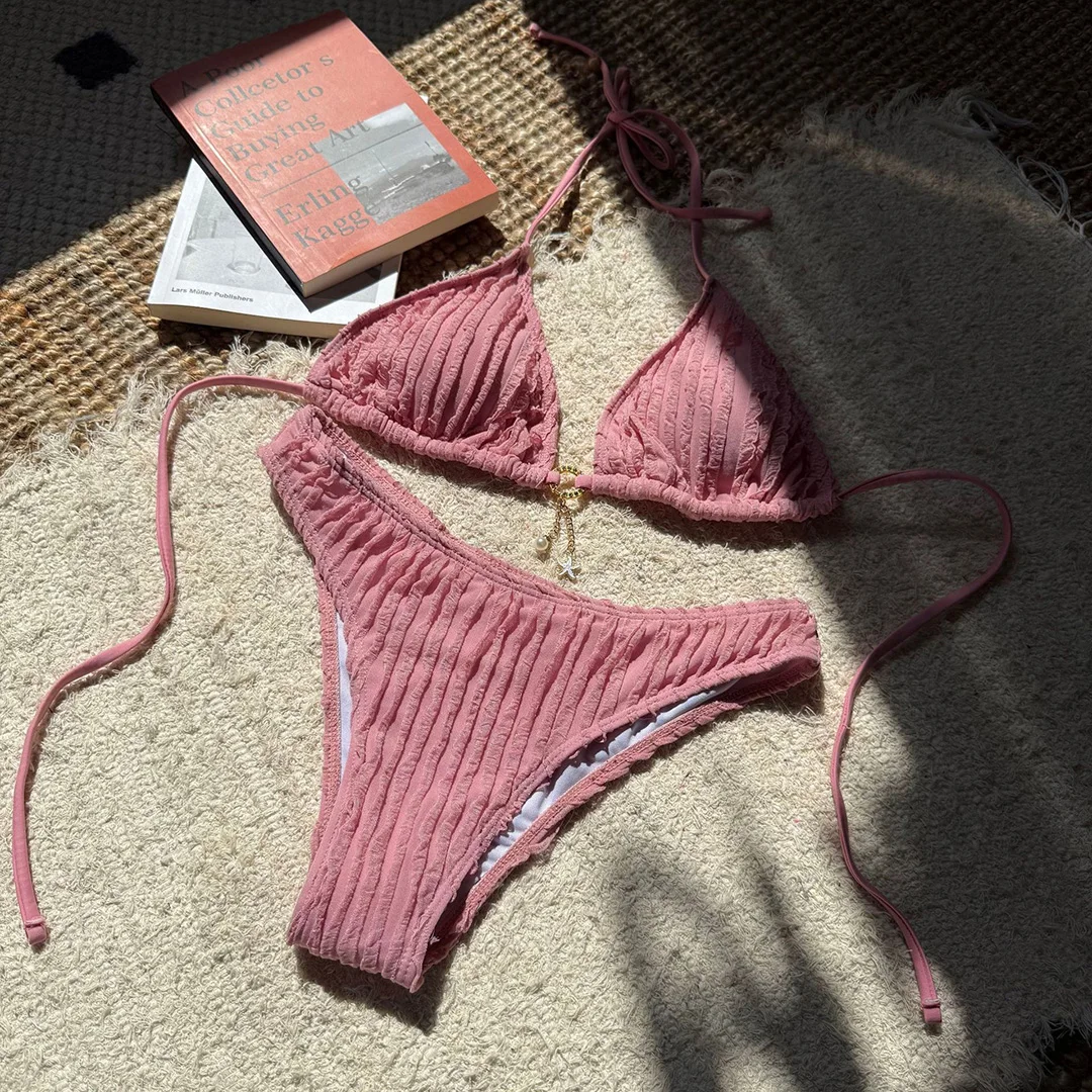 Dwuczęściowy kostium kąpielowy z marszczeniem i zawieszką