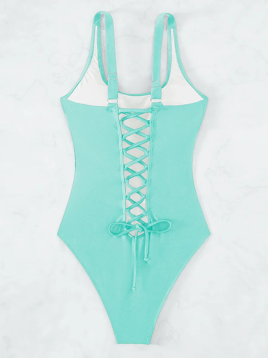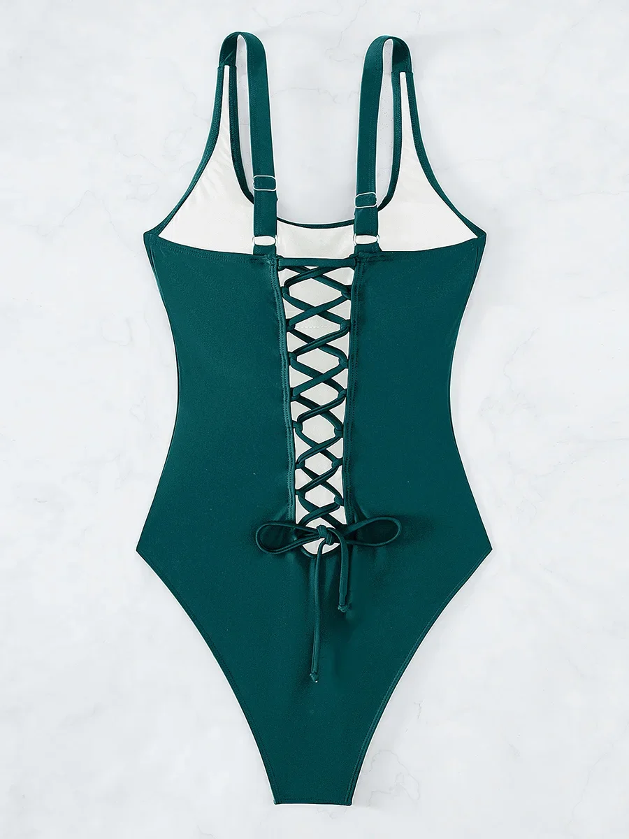 Strona Główna » Produkty » Na Plażę » Stroje kąpielowe » Stroje Jednoczęściowe » Klasyczny jednoczęściowy kostium kąpielowy z modelującymi przeszyciami i sznurowanym tyłem