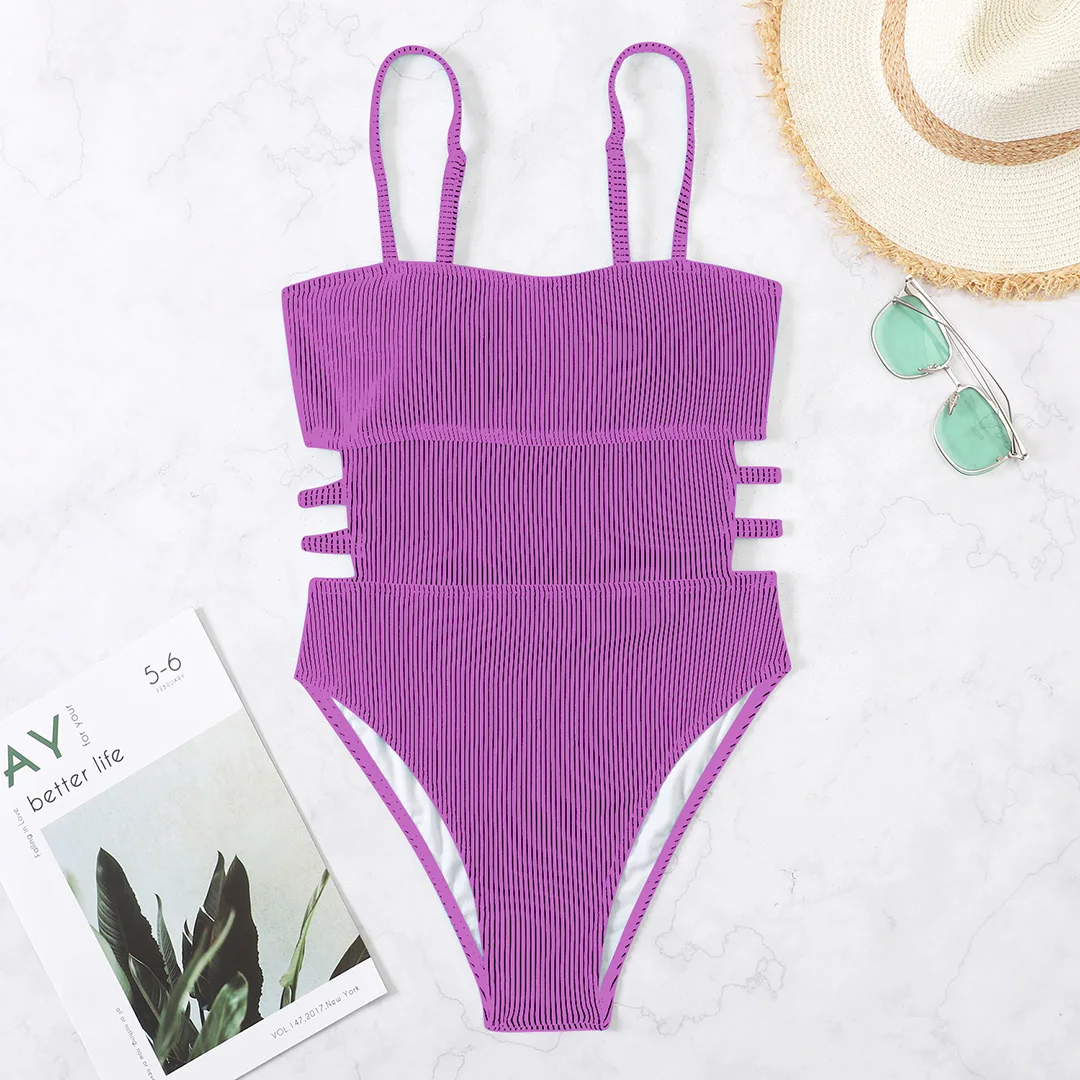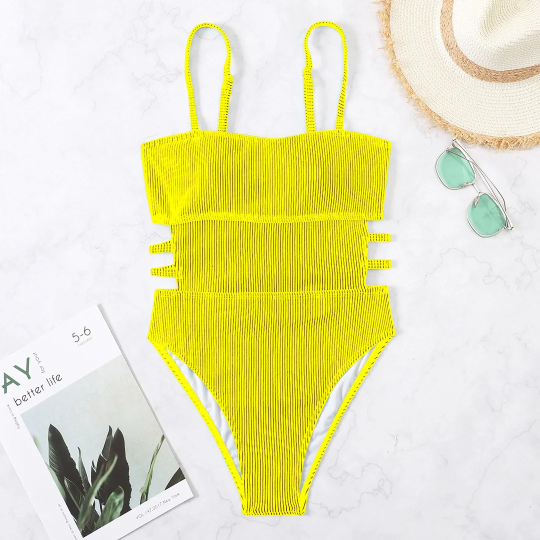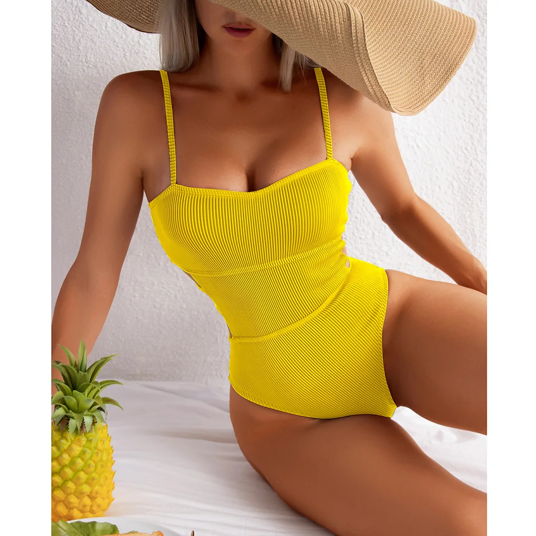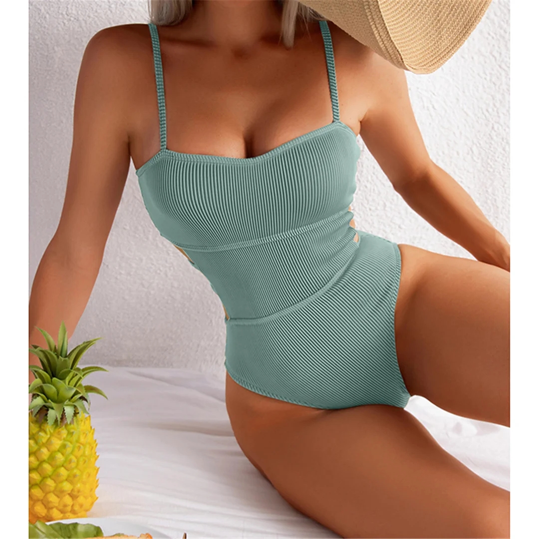 Strona Główna » Produkty » Na Plażę » Stroje kąpielowe » Stroje Jednoczęściowe » Klasyczny jednoczęściowy kostium kąpielowy z prążkowanej tkaniny i zarysowaną talią