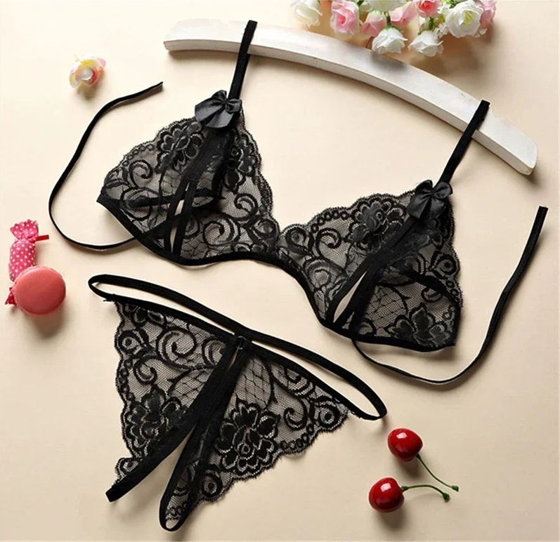 11 opinii dla Zestaw bielizny koronkowej z otwartym krokiem i ozdobnymi kokardkami