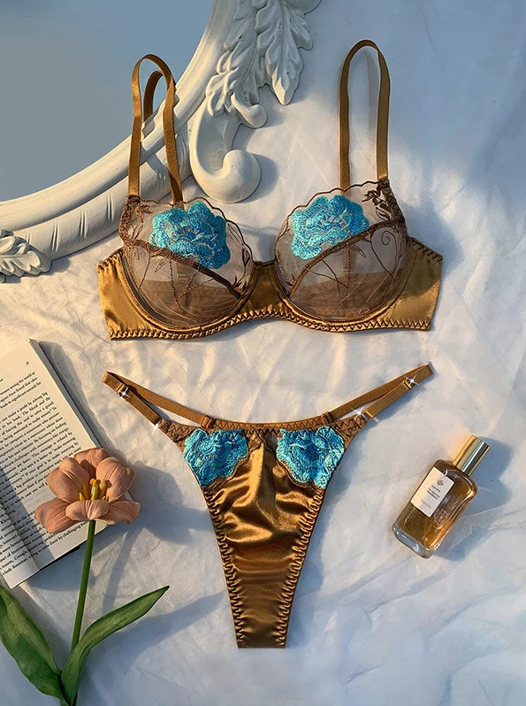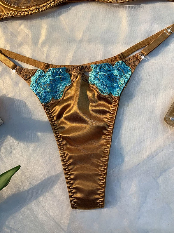 10 opinii dla Zestaw bielizny w odcieniu złota z turkusowym haftem