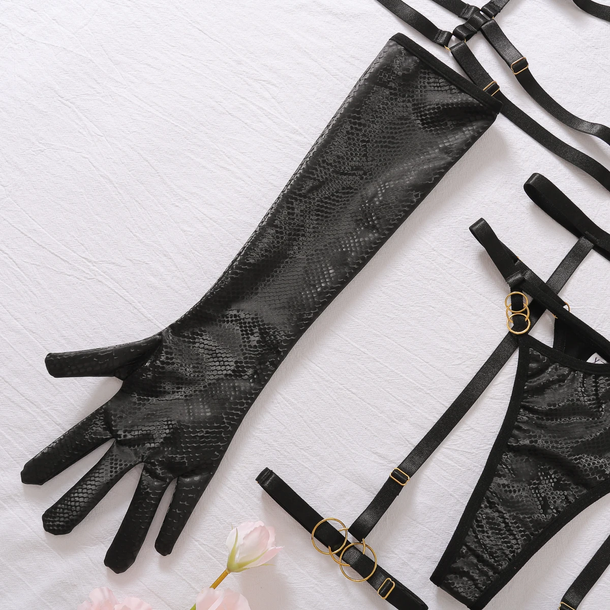 Strona Główna » Produkty » Bielizna Nocna » Komplety Bielizny Damskiej » Zestaw bielizny z długimi rękawiczkami i pozłacanymi pierścieniami
