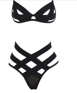 Zestaw bielizny z efektownie wyciętymi elementami i przekrzyżowanymi pasami