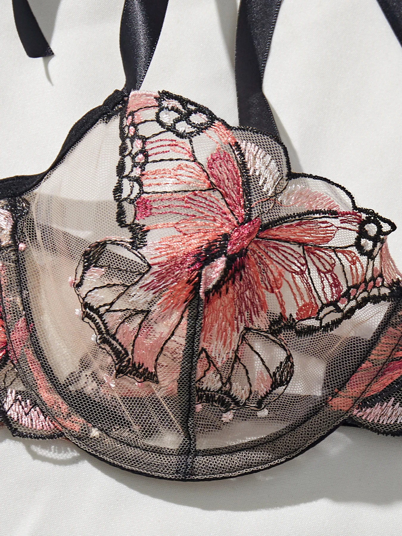 7 opinii dla Zestaw bielizny z haftowanym motylem i wiązaniami na kokardki