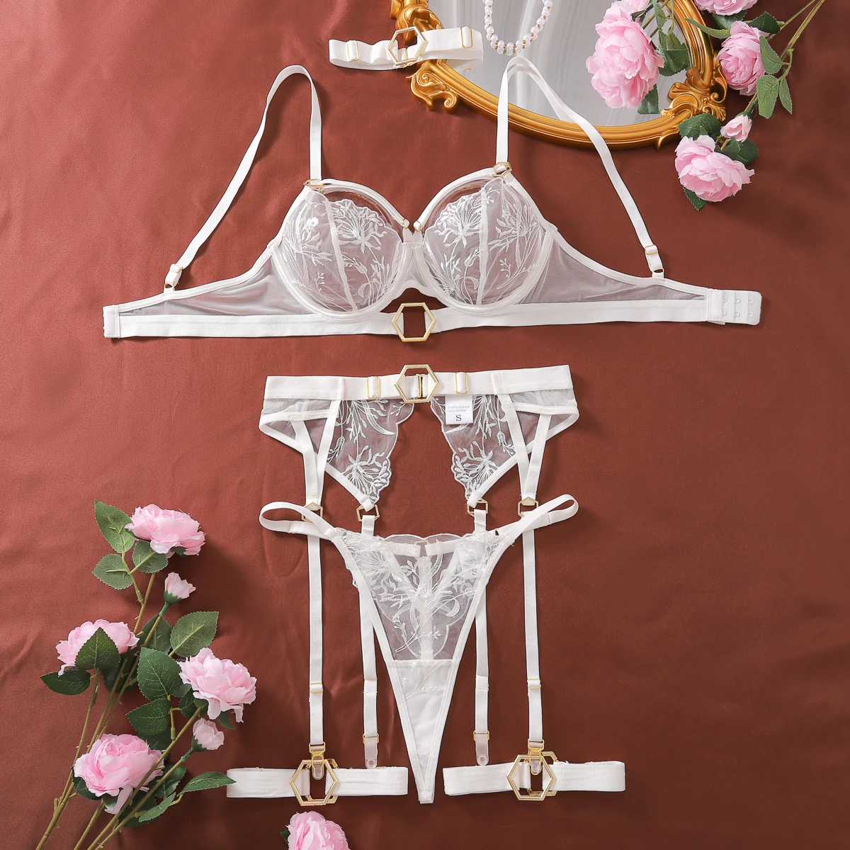 1 opinia dla Zestaw koronkowy z ozdobnymi sprzączkami i pasem do pończoch