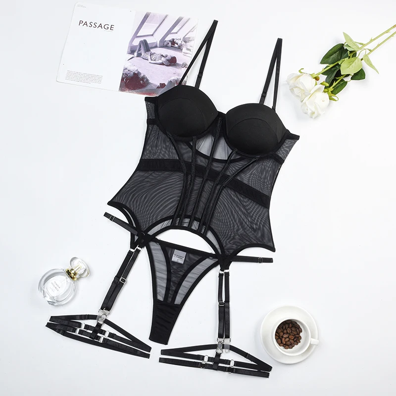 1 opinia dla Zestaw z siateczki z paskami i usztywnianym biustonoszem