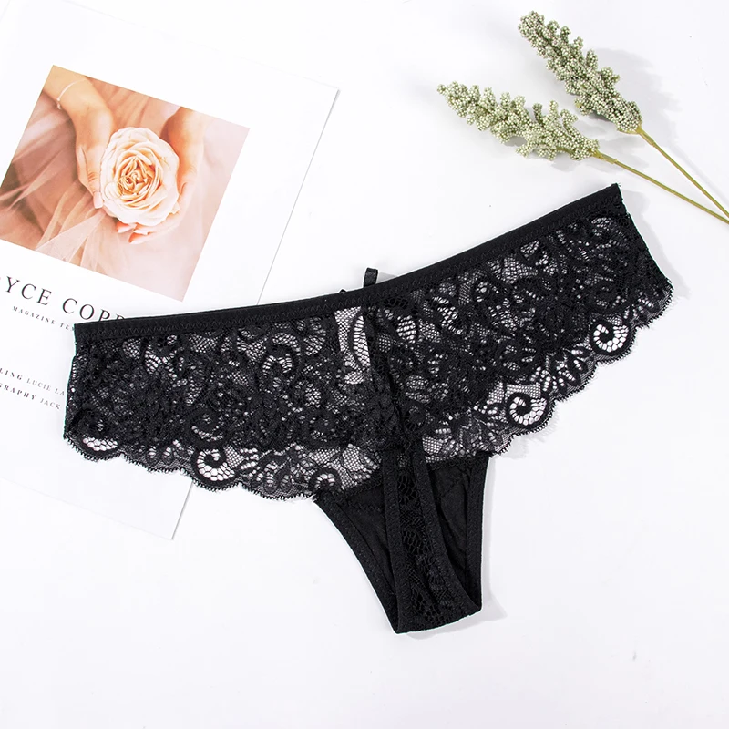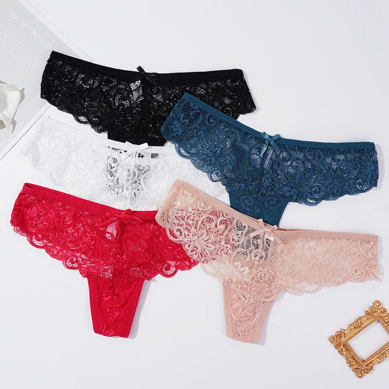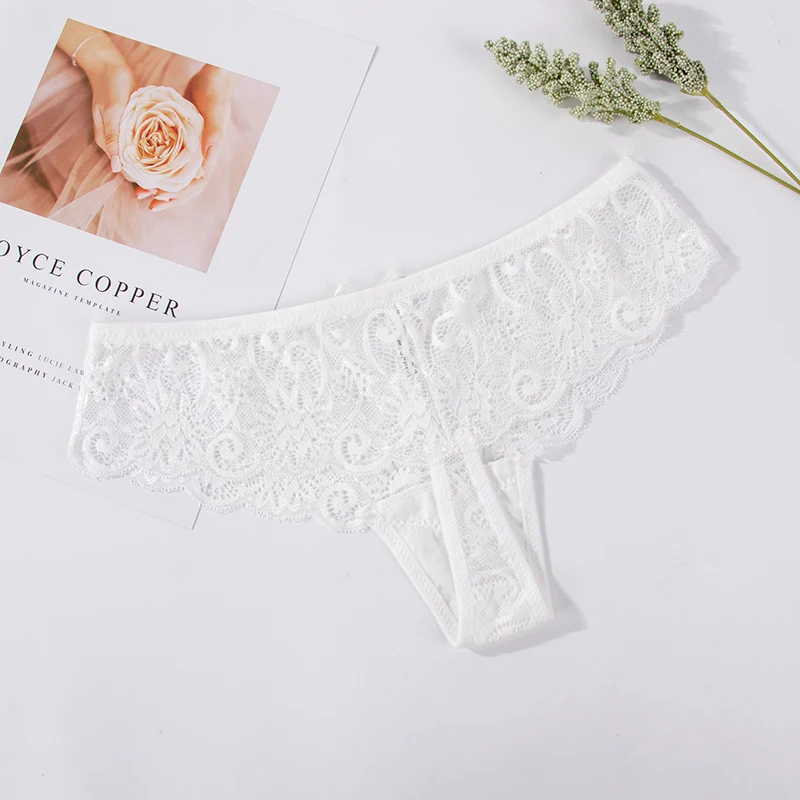 Koronkowe stringi z kokardką i ażurowym wzorem