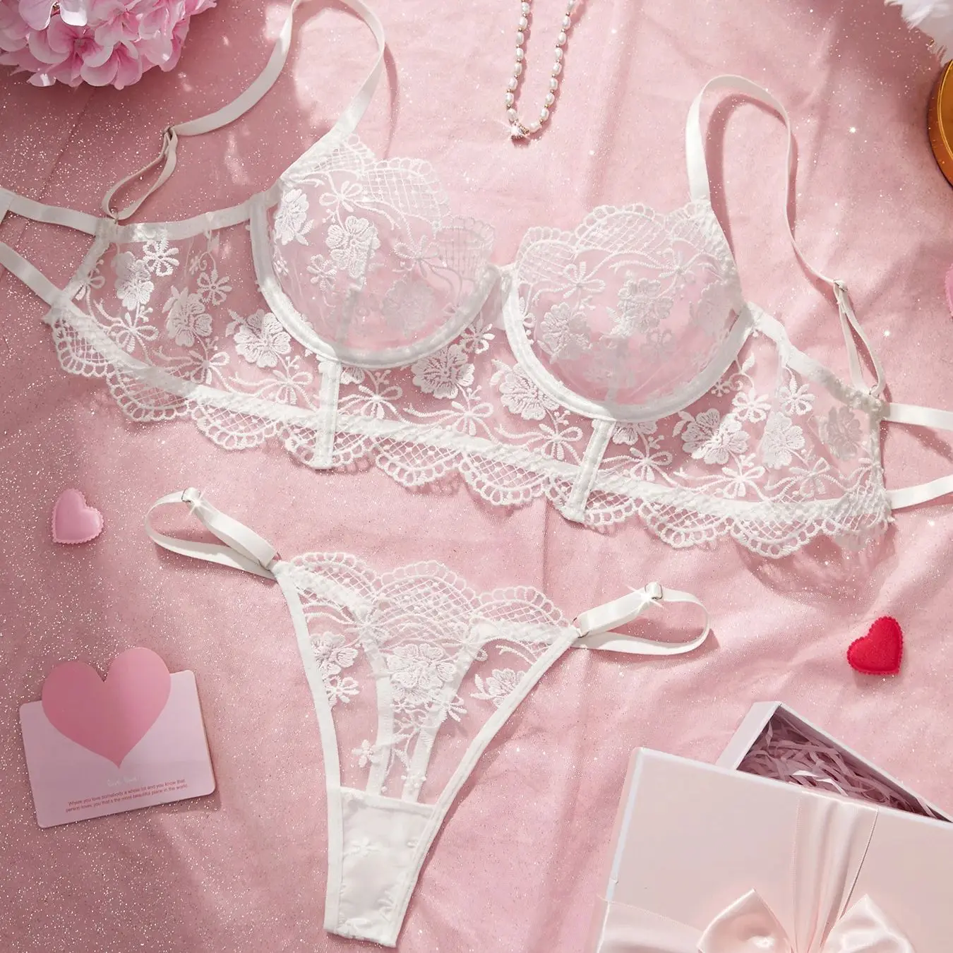 10 opinii dla Koronkowy zestaw bielizny z haftem kwiatowym w bieli