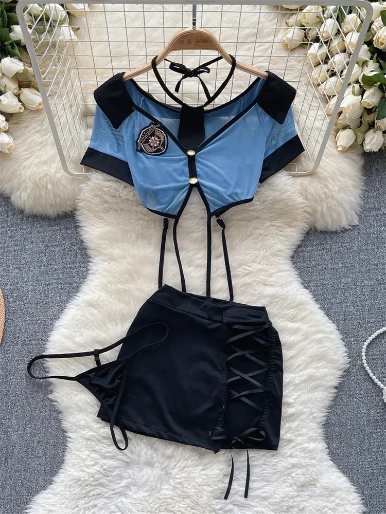 Strona Główna » Produkty » Akcesoria Erotyczne » Stroje erotyczne » Kostium policjantki z krótkim topem i spódnicą