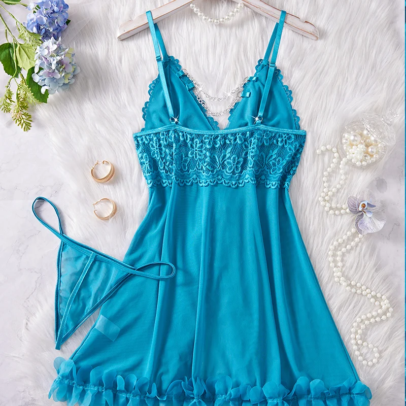 Koszula nocna z koronką i stringami