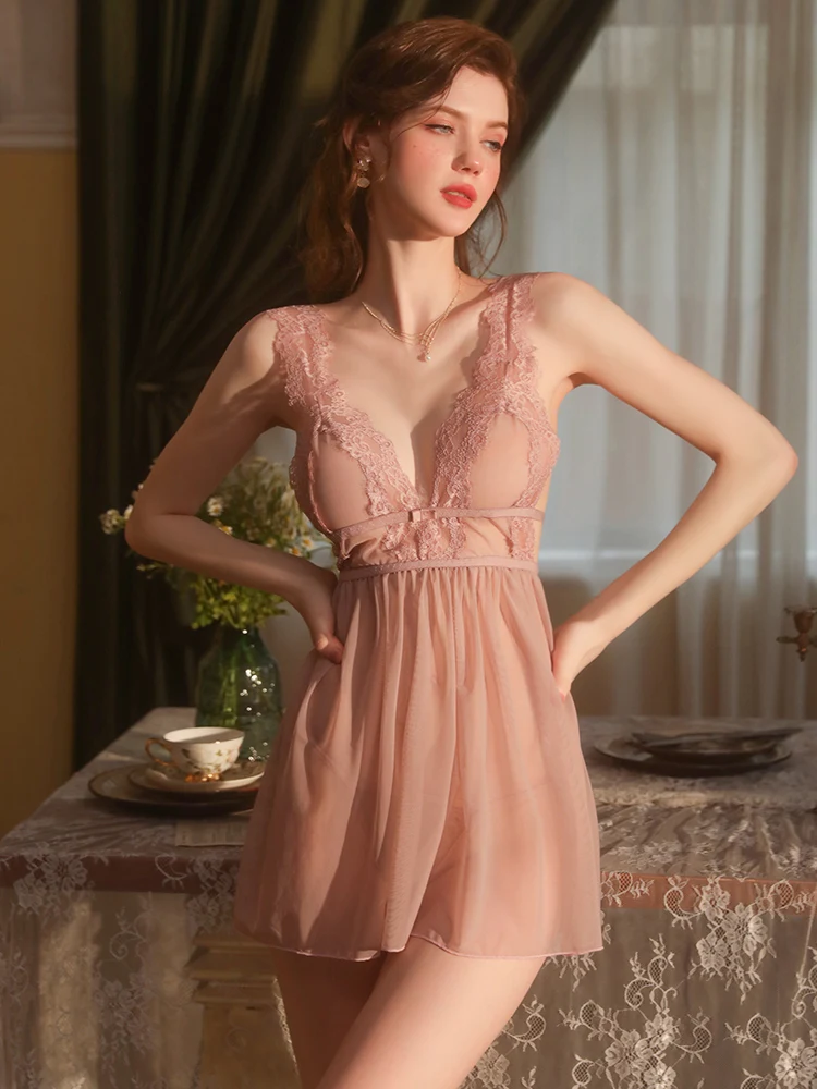 Nocna koronkowa koszulka z głębokim dekoltem