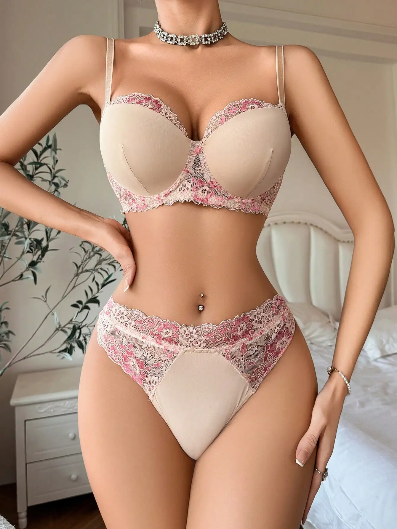 9 opinii dla Kremowo-rozowy zestaw z koronką i lekko połyskującymi detalami