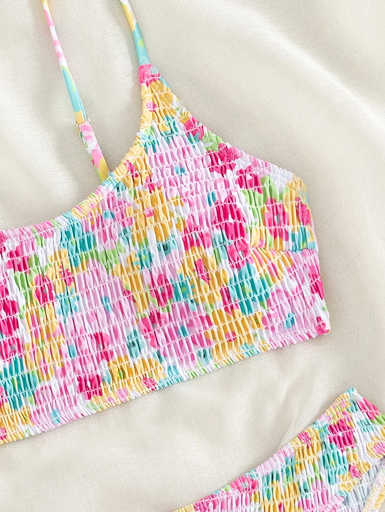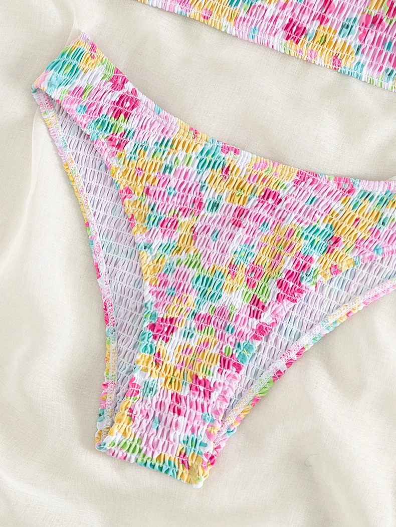 Strona Główna » Produkty » Na Plażę » Stroje kąpielowe » Stroje Dwuczęściowe » Kwiatowy dwuczęściowy strój kąpielowy z marszczonym materiałem