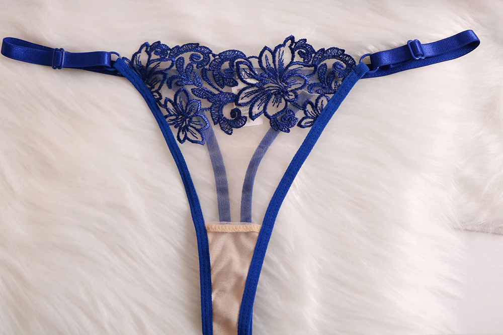 Niebieski zestaw z haftem i paskami