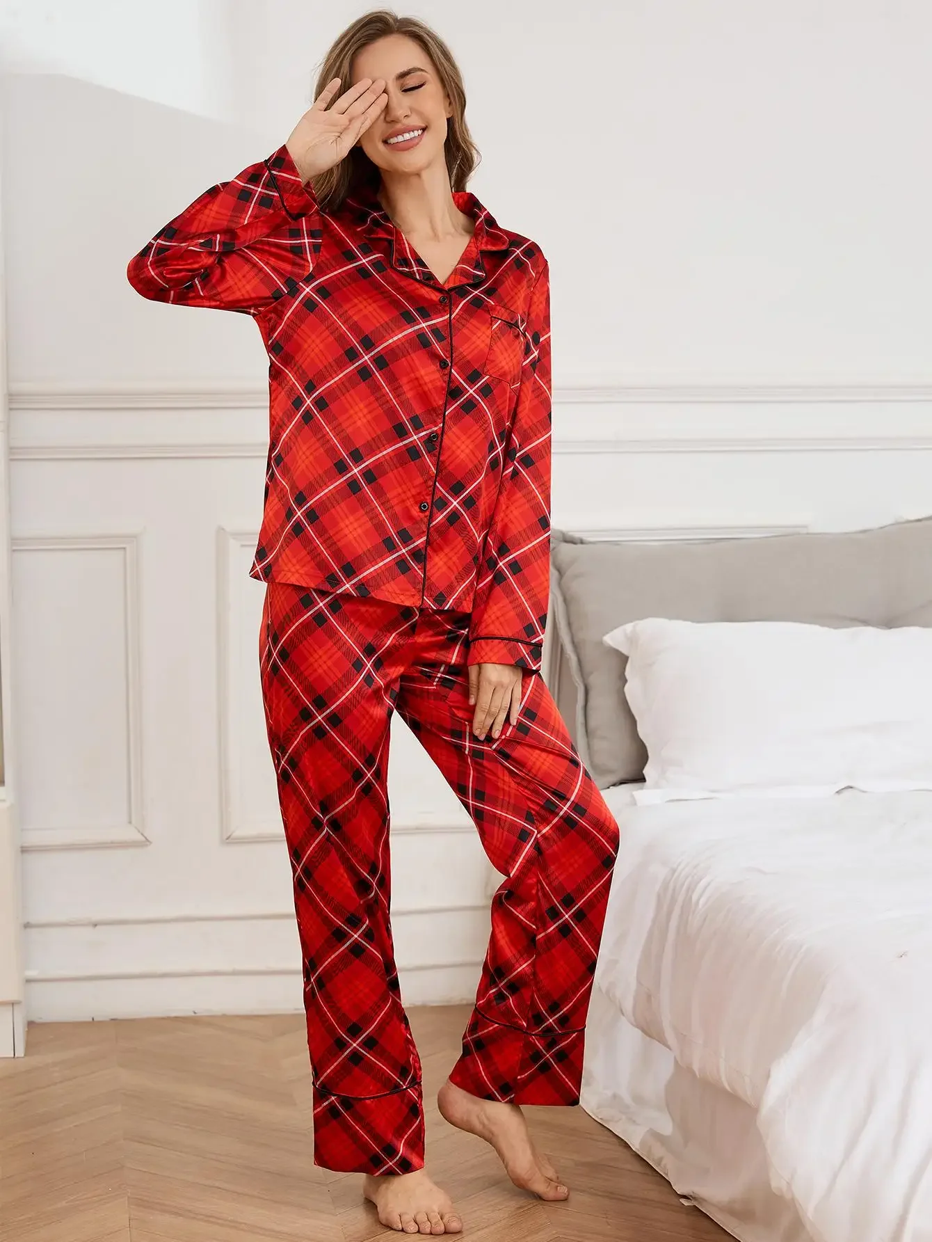 Strona Główna » Produkty » Uncategorized » Piżama w czerwono-czarną kratkę z długim rękawem i guzikami