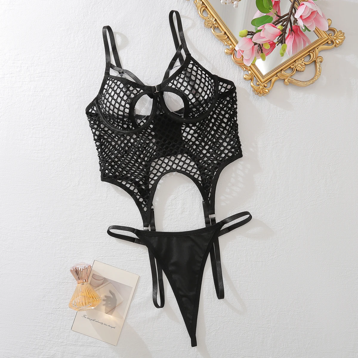 5 opinii dla Zmysłowy komplet z siateczki z wycięciami i paskami