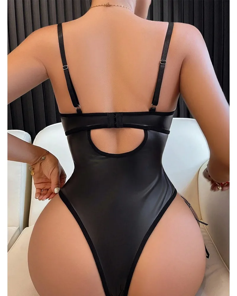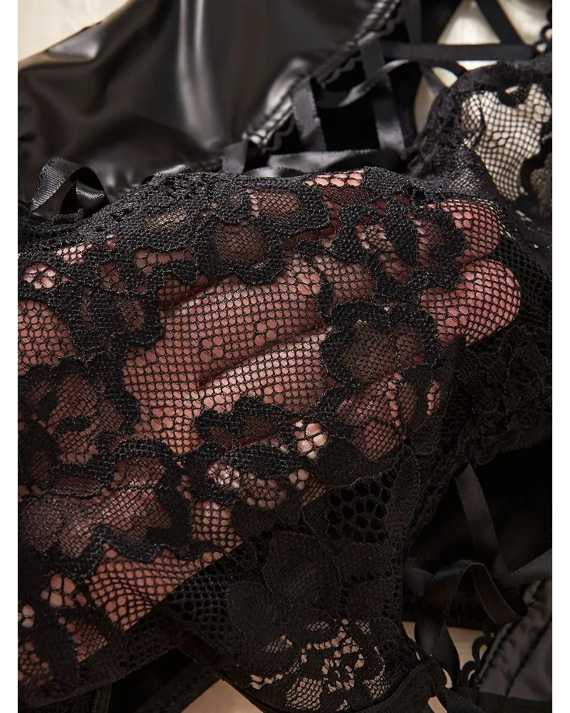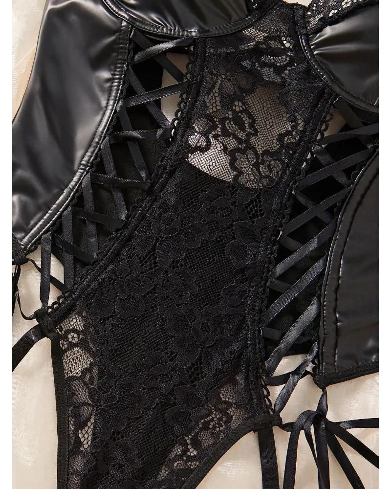 Strona Główna » Produkty » Bielizna Nocna » Body Damskie » Body koronkowe » Skórzano-koronkowe body z pasami do pończoch