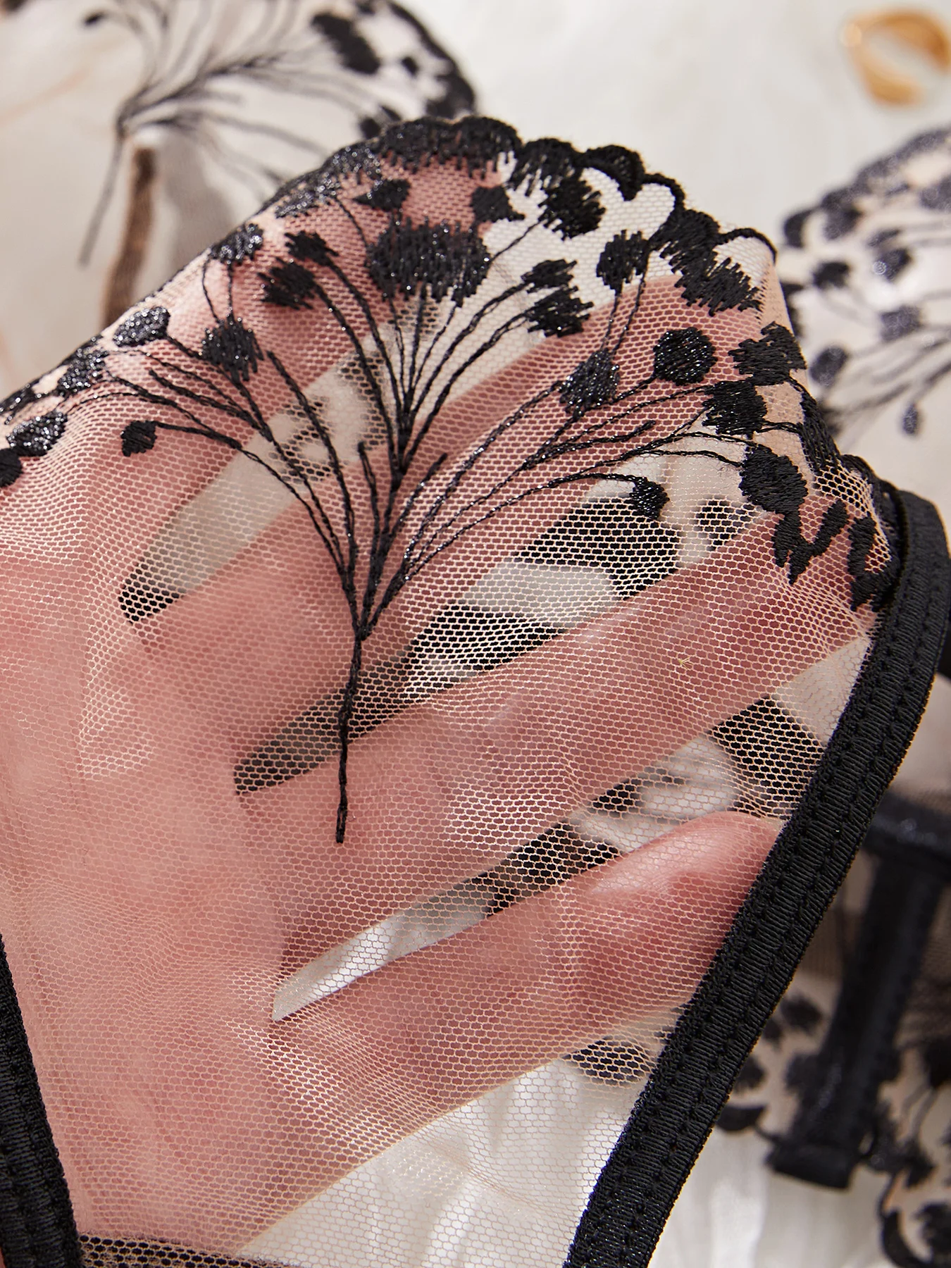 10 opinii dla Przezroczysty zestaw bielizny z haftem w kształcie wachlarza