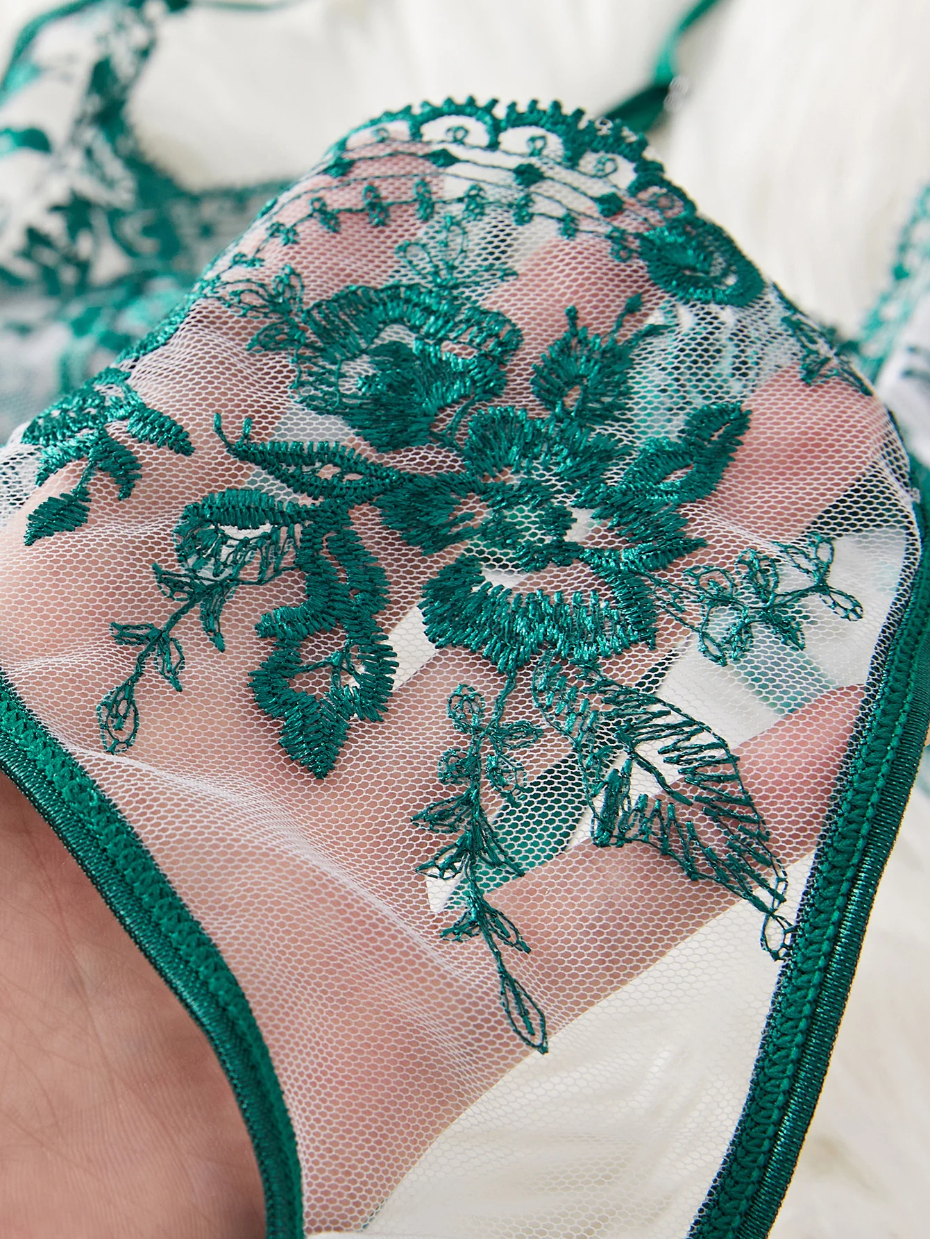 5 opinii dla Przezroczysty zestaw bielizny z zielonym haftem kwiatowym