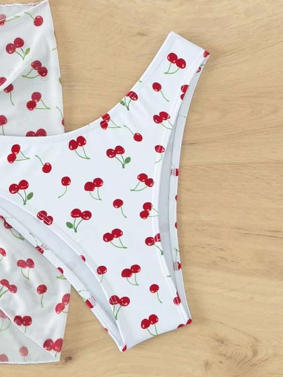 Trzyczęściowe bikini z wiązanym pareo i trójkątną górą