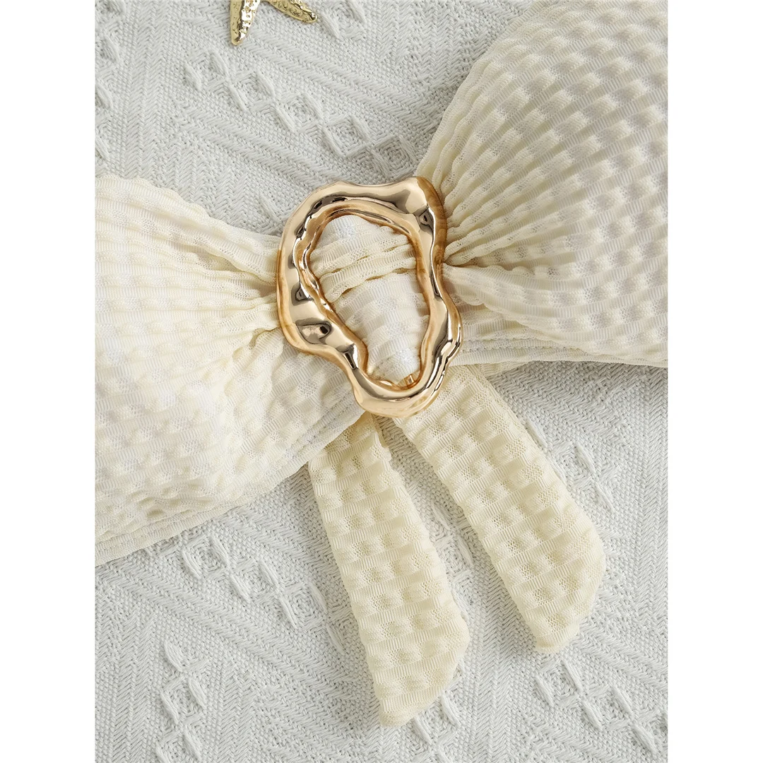Trzyczęściowy strój kąpielowy z bandeau i długą spódnicą z falbaną
