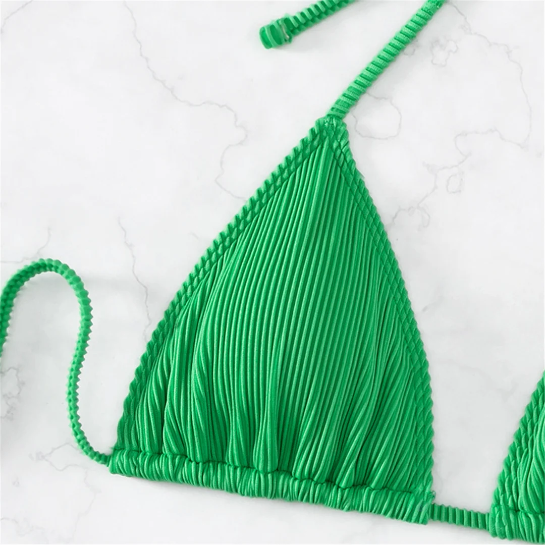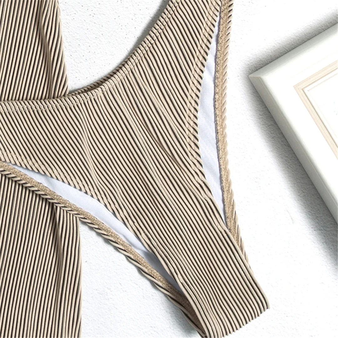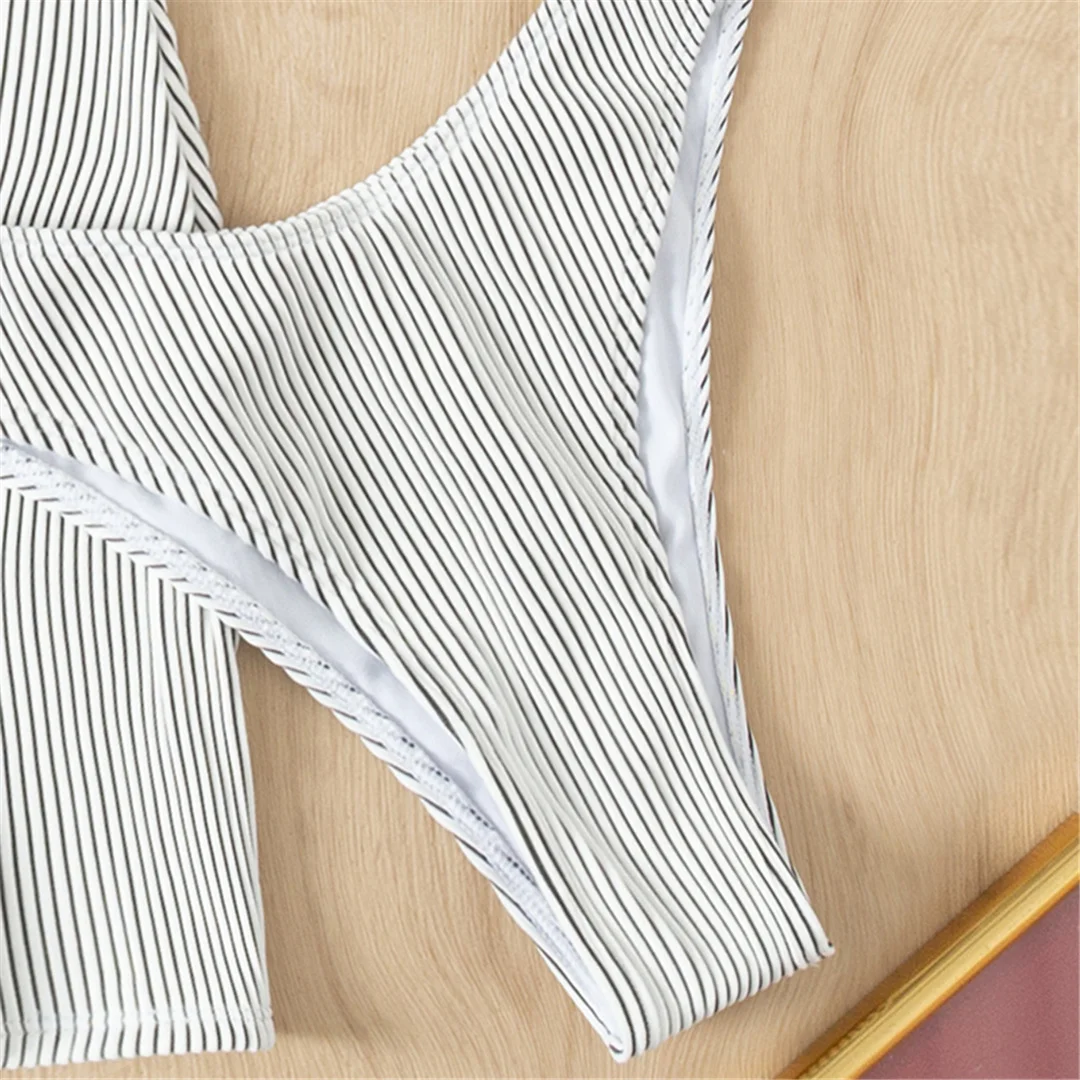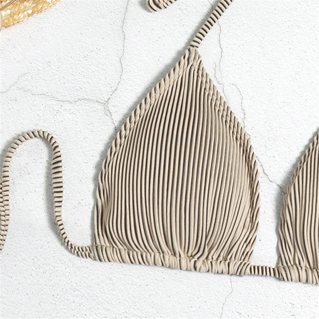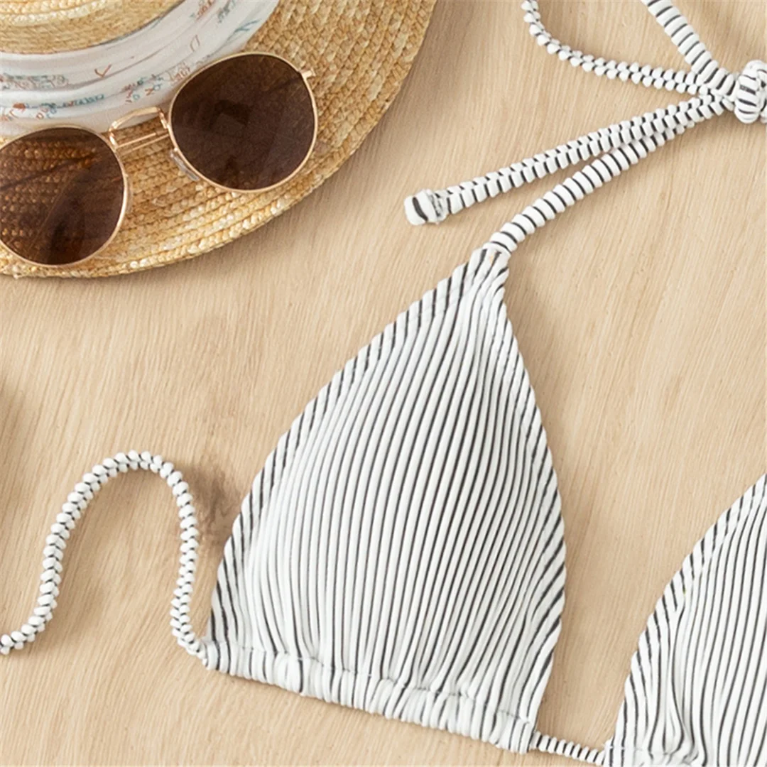 Trzyczęściowy kostium kąpielowy z prążkowaną tkaniną i mini spódnicą