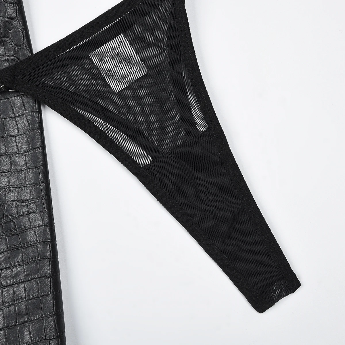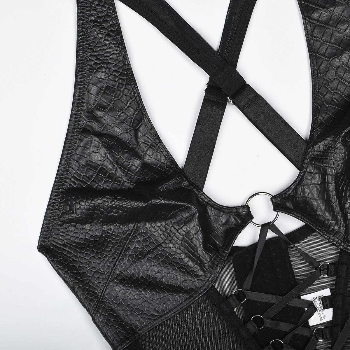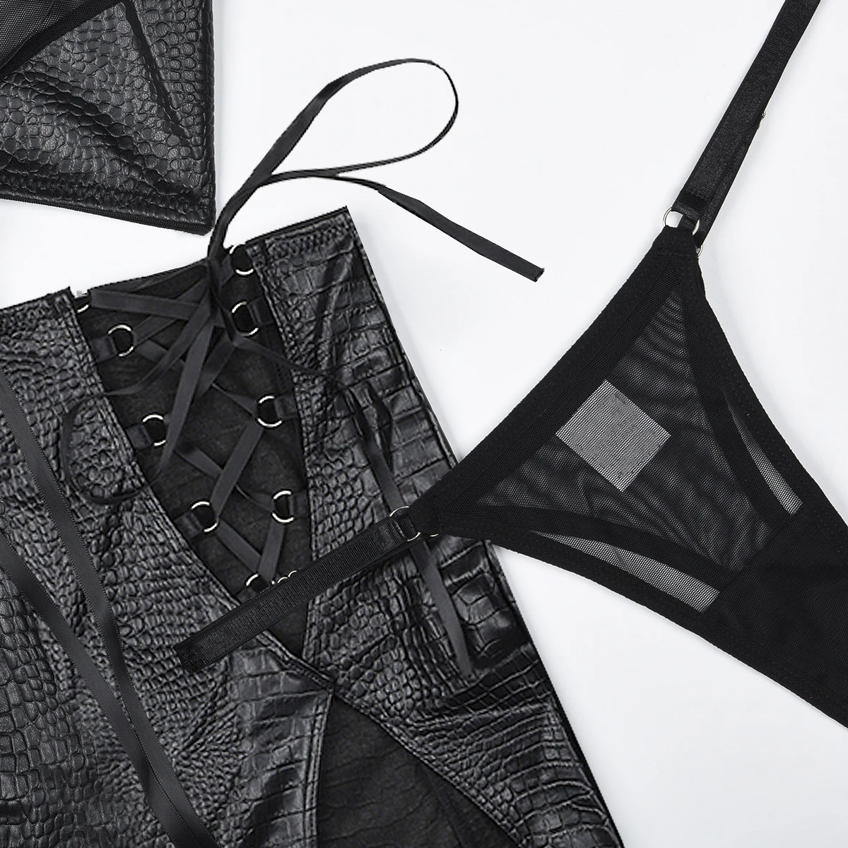 1 opinia dla Zestaw bieliźniany z wiązaniami i spódniczką z imitacji skóry